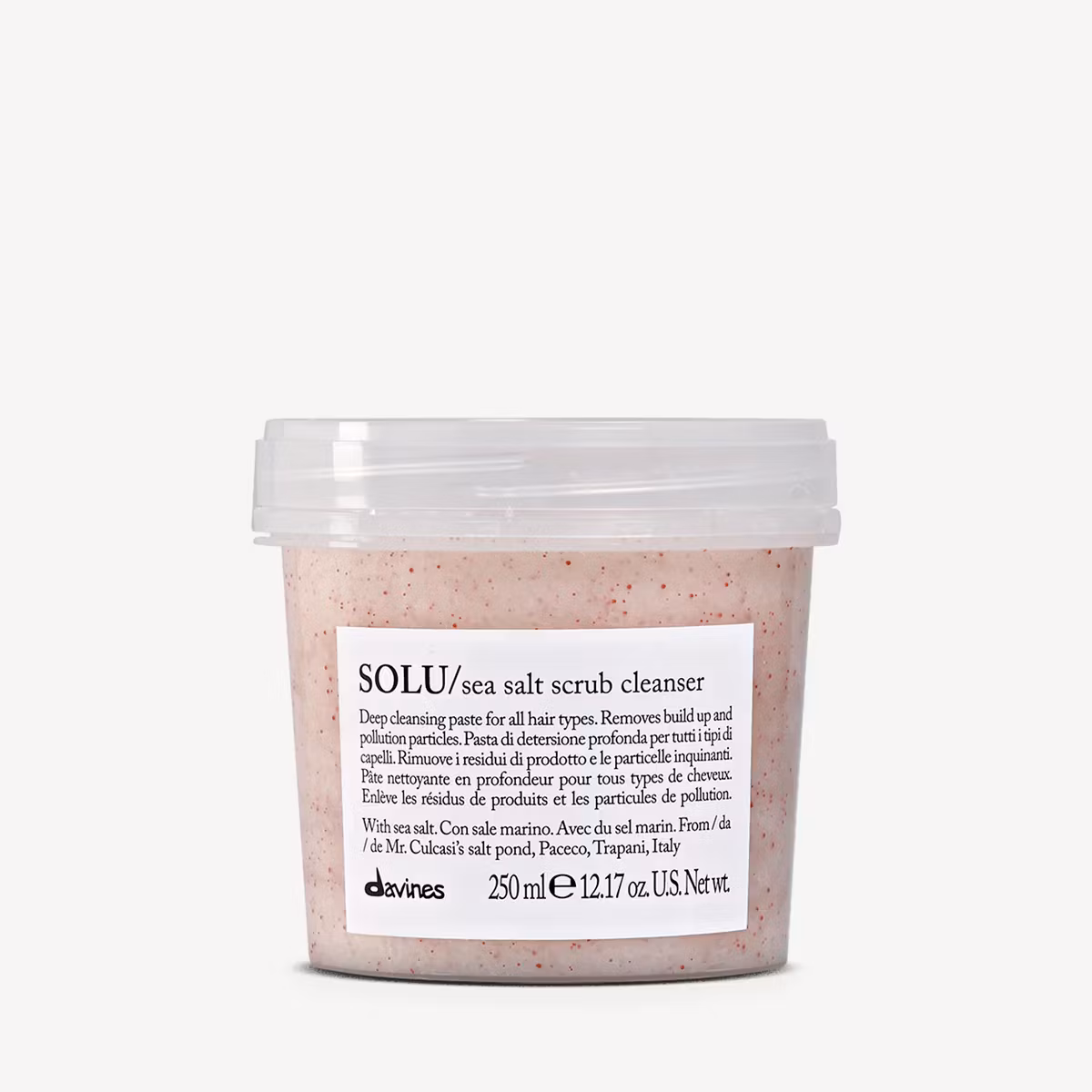 Salt från Mr Culcasis saltbädd i Paceco, Trapani, Italien (Slow Food Presidia). Saltet är rikt på magnesium, kalium och mikroelement. Det hjälper till att ta bort orenheter, produktrester och föroreningar. Ger struktur till håret plus att det känns renare längre.